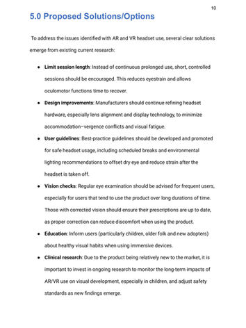 The accommodation–vergence conflict explanation in the health chapter is distilled directly from the whitepaper’s vision science discussion.