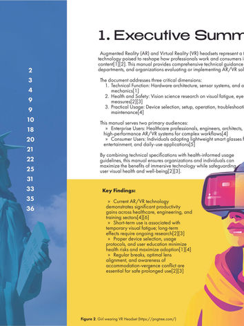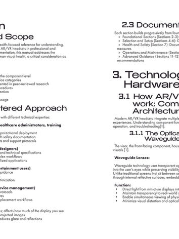 The manual was written to do more than explain how AR/VR headsets work. It combines hardware documentation, health and safety research, and usage recommendations so that both enterprise and consumer users can make informed decisions about long-term use.