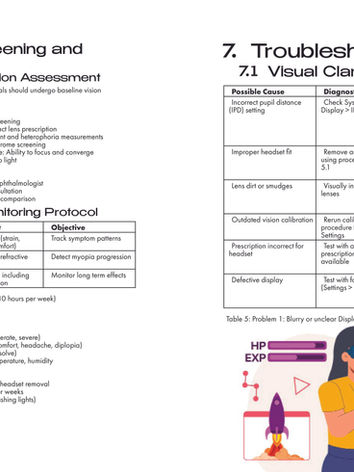This technical manual sits at the center of a three-part project: the manual itself, a supporting whitepaper on vision science, and a feasibility study on AR glasses. Together, they show a complete workflow from research and theory to evaluation and practical guidance, which is exactly what this case study highlights.